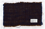 Vävprov i tuskaft. I ena riktningen brunt och i den andra blått bomullsgarn. Provet saknar stadkant och har en sida kastad. Enligt äldre anteckning har vävprovet ingått i en nummerserie och försetts med inventarienummer 6123 i samband med borttagande från pappersark: "6006 - 6156 innefattar nr 1- 159 ... Blad finns kvar...118/6123" Inv.nr 6123 torde tidigare haft nr 118.