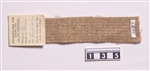Yllevävprov i kypert. Varp i naturvitt ullgarn och inslag i brunbeige ullgarn.En etikett är fästad vid ena kortsidan:" ÅNGERMANLANDS HEM- SLÖJDS AVD. Tel.1327 HÄRNÖSAND --------------------------------------------- Pris pr m. 16:- Bredd c:a 70cm Lit. N:r finns c:a 8m Proven torde franco åter- sändas inom 4 dagar."