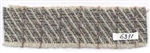 Berett yllevävsprov i kypert. Varp i naturvitt och ljusbrunt ullgarn. Inslag i grönt ullgarn.Alla kanter är klippta.