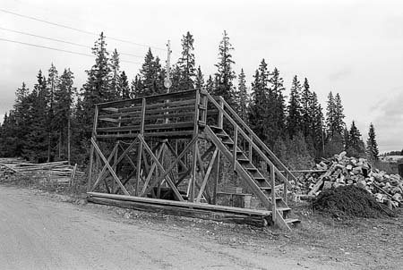 Bildnummer: Fo-82S_197_19 Ur Länsmuseet Västernorrlands bildarkiv Motivord: Brygga, Flottning Fotograf: Ylva Roslund- Forenius Plats: Strömsund Jämtland Fotot är daterat till 1982Mätbrygga vid Bäckmyrvikens avlägg.