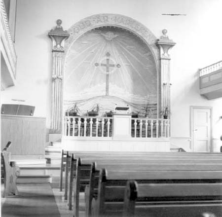 Bildnummer: Fo-A11371 Mapp: 709 Ur Länsmuseet Västernorrlands bildarkiv Motivord: Frikyrka, Frikyrkointeriör Fotograf: Ewa Fägerborg Plats: Örnsköldsvik Ångermanland Fotot är daterat till 1970Örnsköldsvik, Elim kapellet