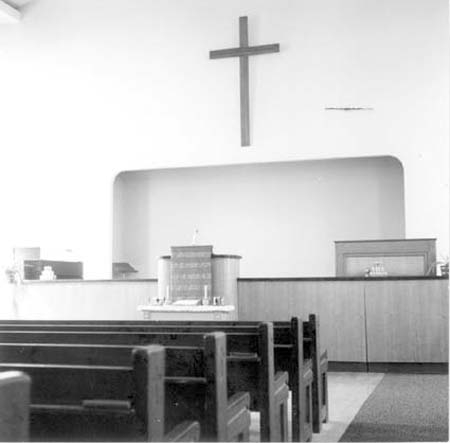 Bildnummer: Fo-A12157 Mapp: 702 Ur Länsmuseet Västernorrlands bildarkiv Motivord: Frikyrka, Frikyrkointeriör Fotograf: Åsa Hellman Bodén Plats: Sollefteå Ångermanland Fotot är daterat till 1970Sollefteå, Missionskyrka