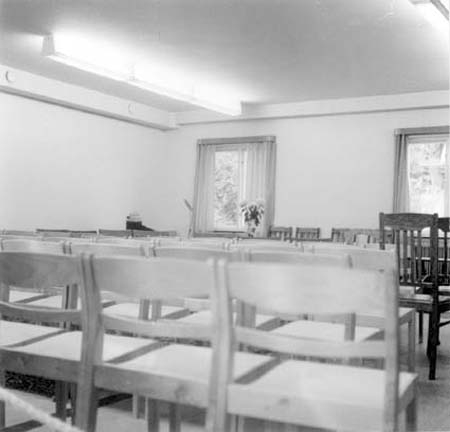 Bildnummer: Fo-A12475 Mapp: 694 Ur Länsmuseet Västernorrlands bildarkiv Motivord: Frikyrka, Frikyrkointeriör Fotograf: Ewa Fägerborg Plats: Härnösand Ångermanland Fotot är daterat till 1970Härnösand, Evangeli Sällskap