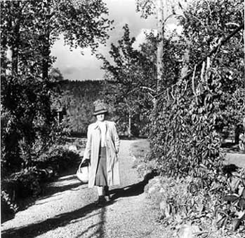 Bildnummer: Fo-A12932 Mapp: 372 Ur Länsmuseet Västernorrlands bildarkiv Motivord: Kvinna, Promenad Fotograf: Viktor Lundgren Plats: Överlännäs Sollefteå Ångermanland Fru Jontha Hedberg på sin morgonrond. Holms säteri.