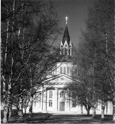 Kyrkan uppfördes efter ritningar av Axel Fr. Nyström vid Överintendentämbetet. Vitputsad stenkyrka byggd som centralkyrka med åttkantig plan i senklassicistisk stil. I varje väderstreck har exteriören en kolonnportik som bär upp en triangelgavel. Kyrkan har åttsidig lanternin försedd med klocktorn och spira med förgyllt kors och kula. Invändigt orgelläktare i öster där entrén finns. En skärmvägg i väster avskiljer sakristian från koret och kyrkorummet. 1922-23 gjordes en restaurering där ett kassettak byggdes under lanterninen och gjutjärnskolonnerna inkläddes. Predikstolen fick ljudtak och den gamla altaruppsatsen återinsattes. Färgskalan blev rokokoinspirerad. Vid nästa restaurering 1957-58 fick sakristian två våningar och dekormålningar utfördes runt kupolen. Fasaderna har putsats om 1968 och 1976 målades med olämplig färg. En ny omputsning utfördes 1985.