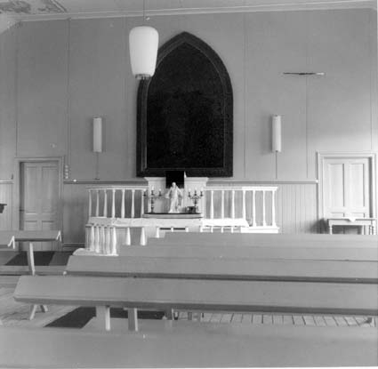 Bildnummer: Fo-A15212 Mapp: 683 Ur Länsmuseet Västernorrlands bildarkiv Motivord: Frikyrka, Interiör Fotograf: Åsa Hellman Bodén Plats: Eriksdal Alnö Sundsvall Medelpad Fotot är daterat till 1971Eriksdal, Metodistkyrkan