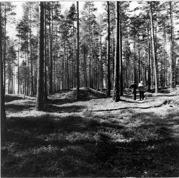 Bildnummer: Fo-A18822 Mapp: 360 Ur Länsmuseet Västernorrlands bildarkiv Motivord: Arkeologi, Barrskog, Gravfält, Gravhög Fotograf: Bo Hellman Plats: Överlännäs Sollefteå Ångermanland Fotot är daterat till 1974-05Björkå-gravfältet före röjning våren 1968