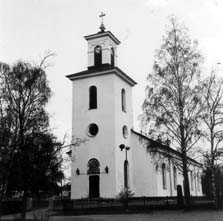 Arkitekt S. Enander. Torn i väster. Korpartiet ombyggt 1907 och ny sakristia tillbyggd. Inredning 1845-48 av Olof Hofrén, Söderhamn (altaruppsats, läktarbarriär, orgelfasad och nummertavlor)