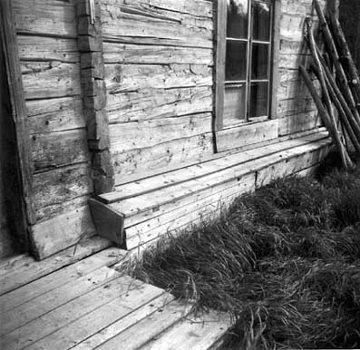 Bildnummer: Fo-A2528 Mapp: 421 Ur Länsmuseet Västernorrlands bildarkiv Motivord: Bostadshus, Torp Fotograf: Sven Bo Ek Plats: Ås Sidensjö Örnsköldsvik Ångermanland Fotot är daterat till 1955Brädklädnad längs grunden.