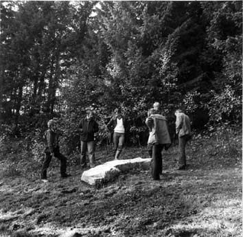 Bildnummer: Fo-A27035 Mapp: 466 Ur Länsmuseet Västernorrlands bildarkiv Motivord: Arkeologi, Man, Runsten Fotograf: Anders Wallander Plats: Byn Sättna Sundsvall Medelpad Fotot är daterat till 1978Byn 3:3, resning av runsten.