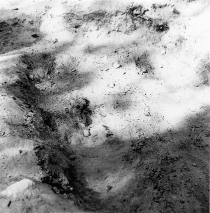 Bildnummer: Fo-A3246 Mapp: 371 Ur Länsmuseet Västernorrlands bildarkiv Motivord: Arkeologi, Arkeologisk undersökning, Gravanläggning, Gravfält, Gravhög Fotograf: Carl Cullberg Plats: Holm Överlännäs Sollefteå Ångermanland Fotot är daterat till 1955Gravfältet vid Holm. Hög nr 15 från S. Träkonstruktionen borttagen, endast fyndet kvar.