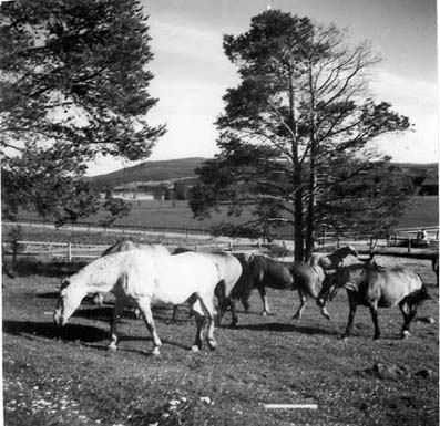 Bildnummer: Fo-A5879 Mapp: 372 Ur Länsmuseet Västernorrlands bildarkiv Motivord: Häst Fotograf: Viktor Lundgren Plats: Överlännäs Sollefteå Ångermanland Hästar vid Holms säteri