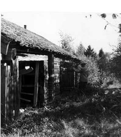Bildnummer: Fo-A5957 Mapp: 267 Ur Länsmuseet Västernorrlands bildarkiv Motivord: Smedja Fotograf: Bo Hellman Plats: Byn Stigsjö Härnösand Ångermanland Fotot är daterat till 1963-09Erik Huldéns smedja