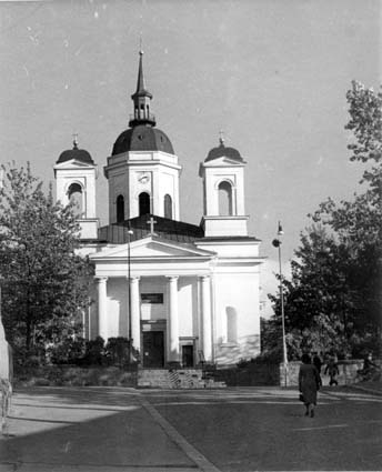 Arkitekt Johan Adolf Hawerman.Nyklassistisk stil.Vitputsad stenkyrka med ett mittorn,två mindre torn och västfasad med pelarrad.En del inventarier från den äldre kyrkan blandannat altartavlan från 1700-talet.Treskeppigt kyrkorum.Orgel från 1731 av Johan Caliman med barockfasad av Magnus Granlund från Hudiksvall