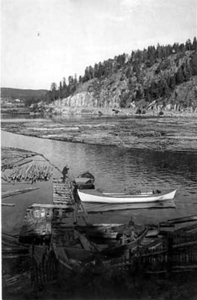 Bildnummer: Fo-A9848 Mapp: 277 Ur Länsmuseet Västernorrlands bildarkiv Motivord: Flottning, Man, Motorbåt Fotograf: Viktor Lundgren Plats: Bergsviken Bjärtrå Kramfors Ångermanland Fotot är daterat till 1930Timmer i Bergsviken.