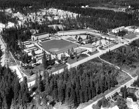 Bildnummer: Fo-BF1958_666 Ur Länsmuseet Västernorrlands bildarkiv Motivord: Grundskola, Tätortsbebyggelse Plats: Skönsberg Sundsvall Medelpad Fotot är daterat till 1958Hagaskolan i Skönsberg.