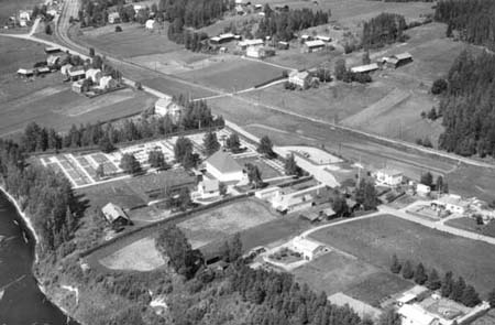 Bildnummer: Fo-BF1961_1389 Ur Länsmuseet Västernorrlands bildarkiv Motivord: Jordbruksbebyggelse, Kyrka, Landsbygdsbebyggelse Plats: Torpshammar Ånge Medelpad Fotot är daterat till 1961Flygfoto över Torpshammar och kyrkan.