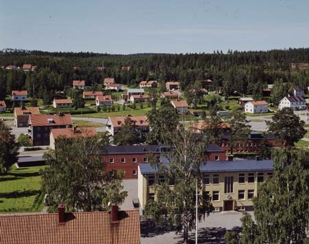 Bildnummer: Fo-BFAH542 Ur Länsmuseet Västernorrlands bildarkiv Motivord: Tätortsbebyggelse Plats: Ramsele Sollefteå Ångermanland Fotot är daterat till 1969Bild från Ramsele tätort. Utsikt från kyrktornet.
