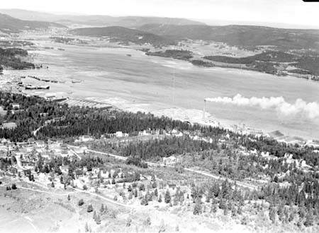 Bildnummer: Fo-BFE1283 Ur Länsmuseet Västernorrlands bildarkiv Motivord: Industriområde, Landsbygdsbebyggelse, Älv Plats: Väja Ytterlännäs Kramfors Ångermanland Fotot är daterat till 1937Flygfoto över Väja.