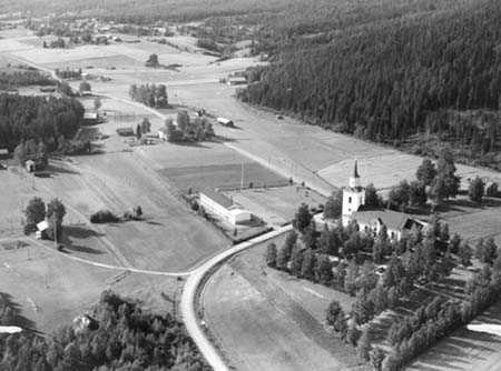 Bildnummer: Fo-BFE566 Ur Länsmuseet Västernorrlands bildarkiv Motivord: Jordbruksbebyggelse, Kyrka Plats: Multrå Sollefteå Ångermanland Fotot är daterat till 1958Flygfoto över Multrå.