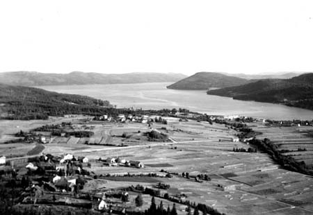 Bildnummer: Fo-BFF_415 Ur Länsmuseet Västernorrlands bildarkiv Motivord: Fjärd, Jordbruksbebyggelse, Landsbygdsbebyggelse Plats: Docksta Vibyggerå Kramfors Ångermanland Dockstafjärden, bilden tagen från Skuleberget söderut.