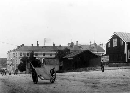 Bildnummer: Fo-BG11 Mapp: 124 Ur Länsmuseet Västernorrlands bildarkiv Motivord: Kärra, Man, Stadsbebyggelse Fotograf: Knut Wallin Plats: Härnösand Ångermanland Nybrogatan från V.
