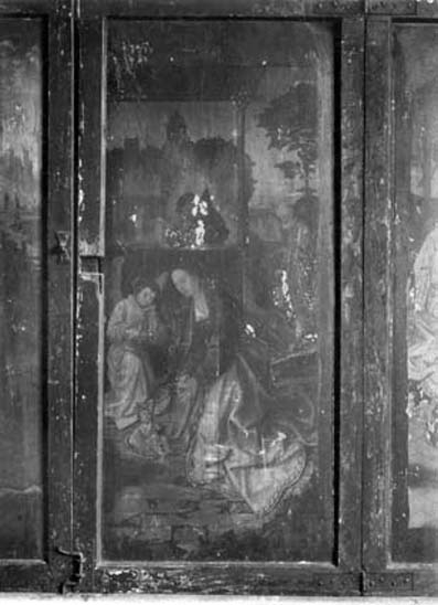 Bildnummer: Fo-DG100 Mapp: 291 Ur Länsmuseet Västernorrlands bildarkiv Motivord: Altarskåp, Kyrka Fotograf: Arvid Holmstedt Plats: Nordingrå Kramfors Ångermanland Fotot är daterat till 1912Detalj av altarskåp.