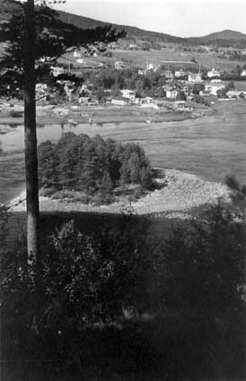 Bildnummer: Fo-E499 Mapp: 346 Ur Länsmuseet Västernorrlands bildarkiv Motivord: Stadsvy, Älv Fotograf: Viktor Lundgren Plats: Sollefteå Ångermanland Utsikt från Petersborg. Västra delen av staden med Skärvstaklippan i bakgrunden.