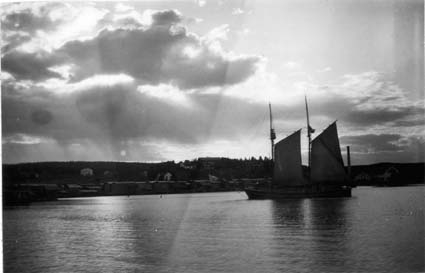 Bildnummer: Fo-E599 Mapp: 570 Ur Länsmuseet Västernorrlands bildarkiv Motivord: Segelfartyg Fotograf: Viktor Lundgren Plats: Högsjö Härnösand Ångermanland Fotot är daterat till 1930-talSegelfartyg på Ångermanälven.