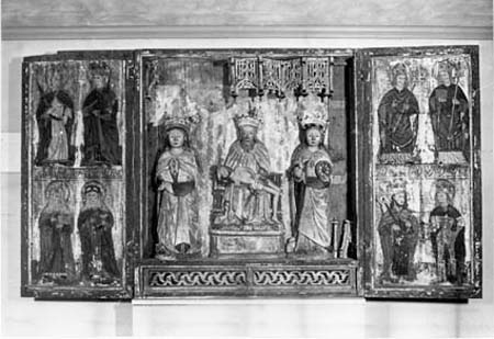 Motivord: Altarskåp, Helgonskulptur, Kyrka, Kyrkoinventarie