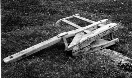 Träplog med träfjöl, ej plåtbeslagen. Från Junselevallen, 1772. Enligt fotografens antagande dock från början av 1800-talet. Junsele hembygdsgård