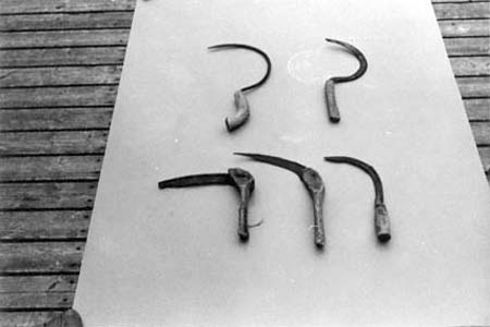 Bildnummer: Fo-S327_29 Mapp: 516 Ur Länsmuseet Västernorrlands bildarkiv Motivord: Museiföremål, Skäror Fotograf: Per Söderlind Plats: Härnösand Murberget Ångermanland Jordbruk. Olika typer av skäror. Övre raden: M 15433, M 15438. Nedre raden: M 12685, M 12679, M 9060.