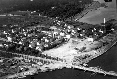 Bildnummer: Fo-U11008 Ur Länsmuseet Västernorrlands bildarkiv Motivord: Bro, Stadsvy Fotograf: Oscar Bladh Plats: Härnösand Ångermanland Fotot är daterat till 1927Flygbild över Härnösand med Nybron. Nr 1461, C 1558.