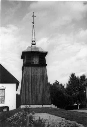 Klockstapeln i trä uppfördes 1915 till det äldre gravkapellet. Kyrkogården anlades 1914.