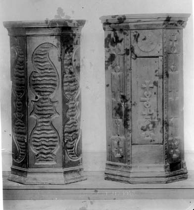 Bildnummer: Fo-U4065 Mapp: 598 Ur Länsmuseet Västernorrlands bildarkiv Motivord: Hörnskåp Plats: Stockholm Södermanland N.M. 85313 och 85314, från Gideå sn, Ångermanland. Från främmande samlingar. Foto från Nordiska museet.