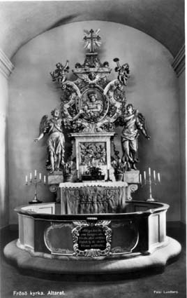 Bildnummer: Fo-U8757 Mapp: 550 Ur Länsmuseet Västernorrlands bildarkiv Motivord: Altare, Kyrka Fotograf: - Lundberg Plats: Frösö Östersund Jämtland Frösö kyrka, altaret. Vykort.
