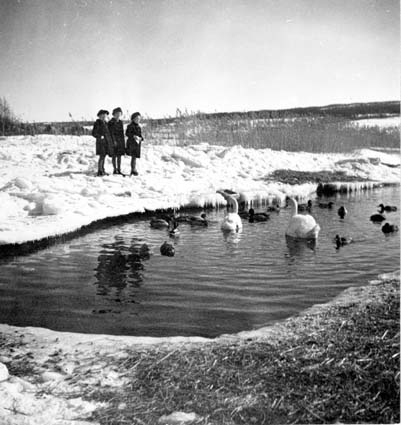 Bildnummer: Fo-U9641 Mapp: 252 Ur Länsmuseet Västernorrlands bildarkiv Motivord: Andakt, Barn, Svanar, Vinterbild Fotograf: Viktor Lundgren Plats: Härnösand Ångermanland