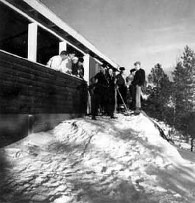 Bildnummer: Fo-U9679 Mapp: 269 Ur Länsmuseet Västernorrlands bildarkiv Motivord: Byggnad, Skidåkning, Utflykt, Vinterbild Fotograf: Viktor Lundgren Plats: Säbrå Härnösand Ångermanland Skidstugan på Fälleberget