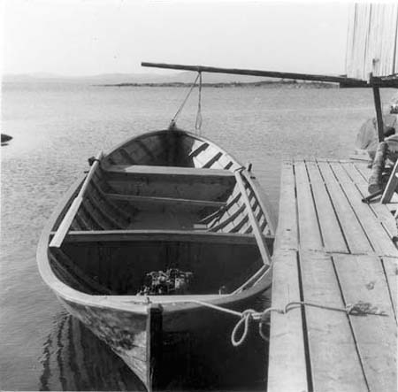 Arthur Sjödin Otterbäcken född 1907, byggde den här båten tillsammans med sin pappa på 1930-talet. Bilden tagen vid Sjödins brygga på Grunna.