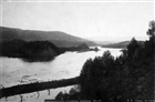 Röd linoleum är infälld i trappa upp till övervåningen i villa från mitten av 1950- talet.