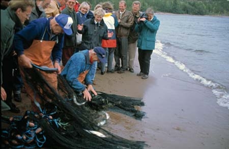 Bildnummer: Fo-YLMLG00875 Ur Länsmuseet Västernorrlands bildarkiv Motivord: Fiskare, Människor, Notfiske Fotograf: Lars Guvå Plats: Mjältön Vibyggerå Kramfors Ångermanland Fotot är taget någon gång mellan 1970 och 1990Notdragning